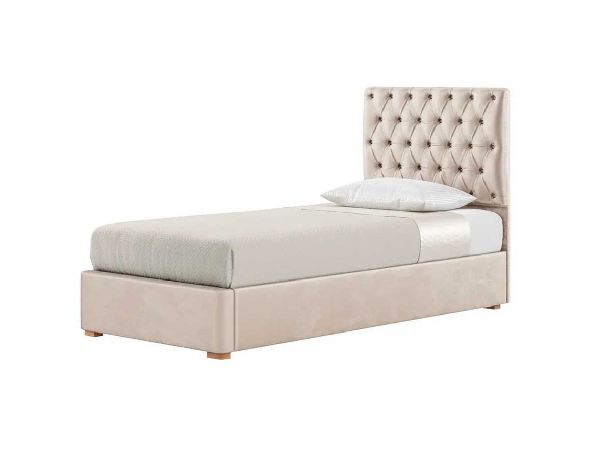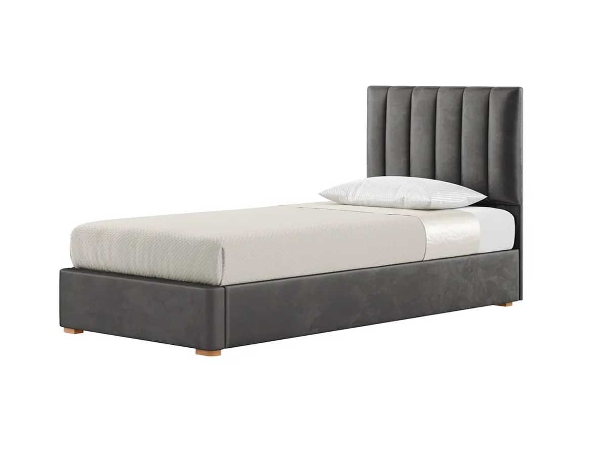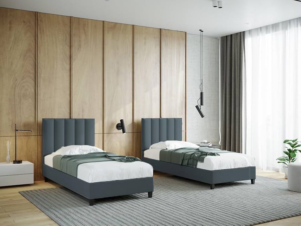 Lit 1 place tapissé 90×190 cm – Confortable et élégant, avec structure en bois solide et tissu antitache au choix. Idéal pour chambre d’enfant, d’ami ou d’adulte. Livré en 2 parties, facile à monter.